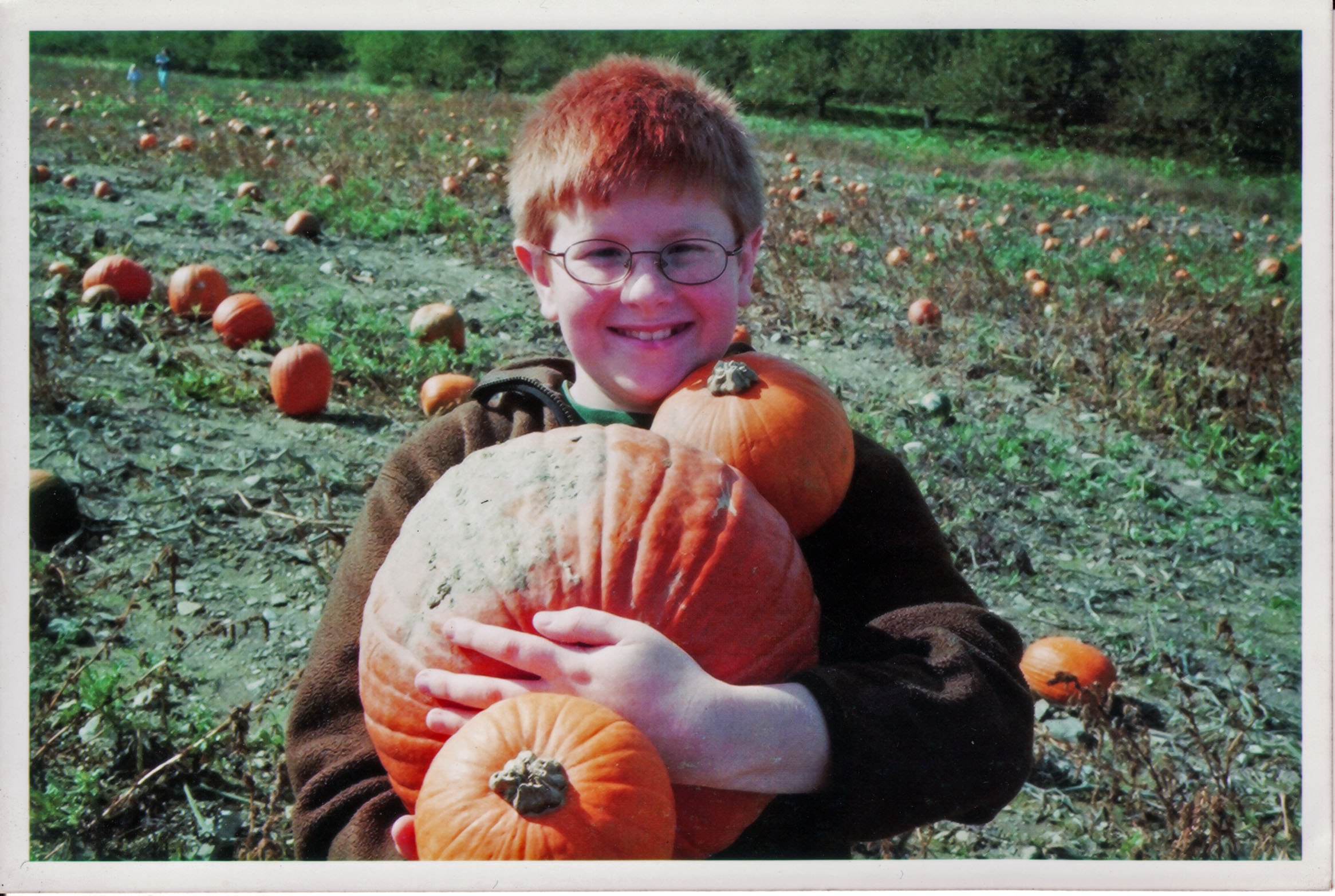 As a young boy, my son had pumpkin red hair and spent his childhood quests for the perfect pumpkin camouflaged among his choices. Here was proof that we had pumpkin in our genes.