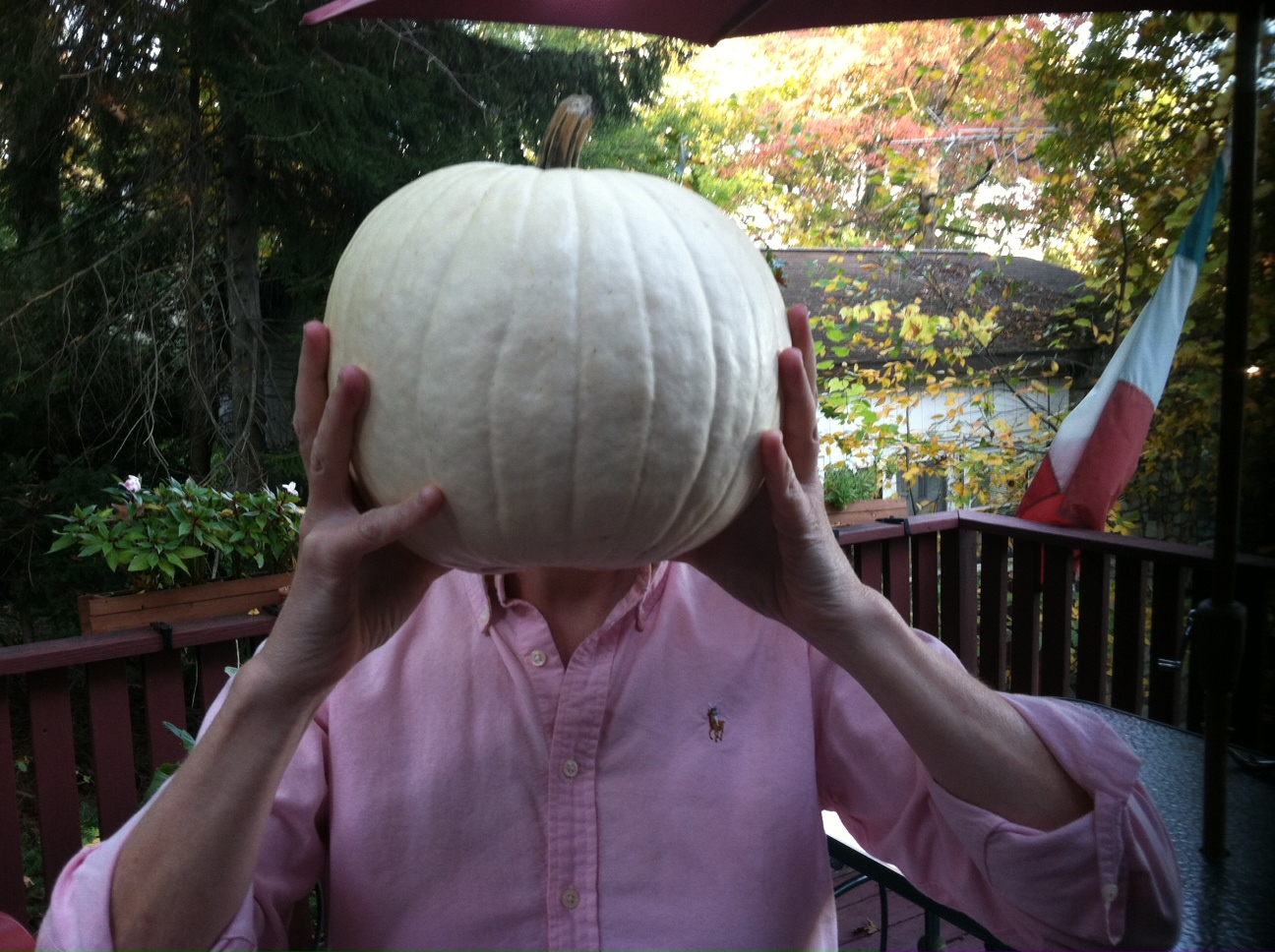 So far this year we’ve brought home five pumpkins. Three traditional orange pumpkins, a Cinderella pumpkin and a white one also known as a lunar pumpkin. The lunar pumpkin reminds me of a relative. He sits on the kitchen table and keeps me company at 6:15 in the morning as I drink my tea and read the newspaper. I keep thinking about putting him outside with the others but I can’t bear to part with him.